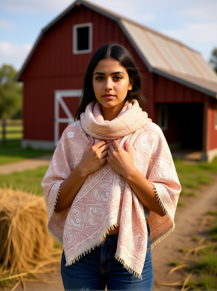 Body Wrap / Shawl S1 Peach and White